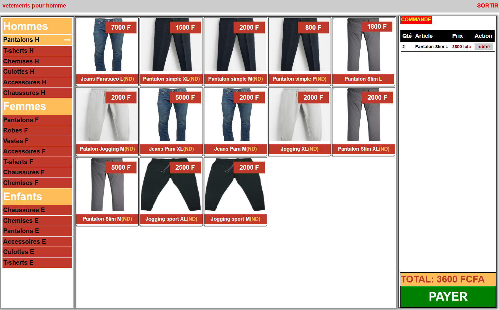 BRONZE Interface de gestion Logiciel de caisse 1 utilisateur 2 ans de stockage Gestion des produits Gestion des achats Gestion des ventes 3 comptes d operation | ARGENT Interface de gestion Logiciel de caisse 3 utilisateurs 3 ans de stockage Gestion des produits Gestion des achats Gestion des ventes Gestion des stocks automatisée Inventaire à jour automatiquement Rapport de vente 3 comptes d operation | OR Interface de gestion Logiciel de caisse 5 utilisateurs 5 ans de stockage Gestion des produits Gestion des achats Gestion des ventes Gestion des fournisseurs Gestion des utilisateurs Gestion des stocks automatisée Inventaire à jour automatiquement 3 comptes d operation Plusieurs types de rapport Statistiques à jour automatiquement |